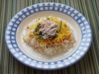 わらびを中心に竹の子、木耳、菜の花、なめこで彩を付けました。