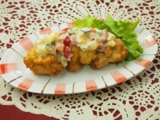 鶏の唐揚げ~カラフルわさびクリームソース~