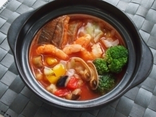 〆はもちもちパスタ!海鮮たっぷりトマト鍋