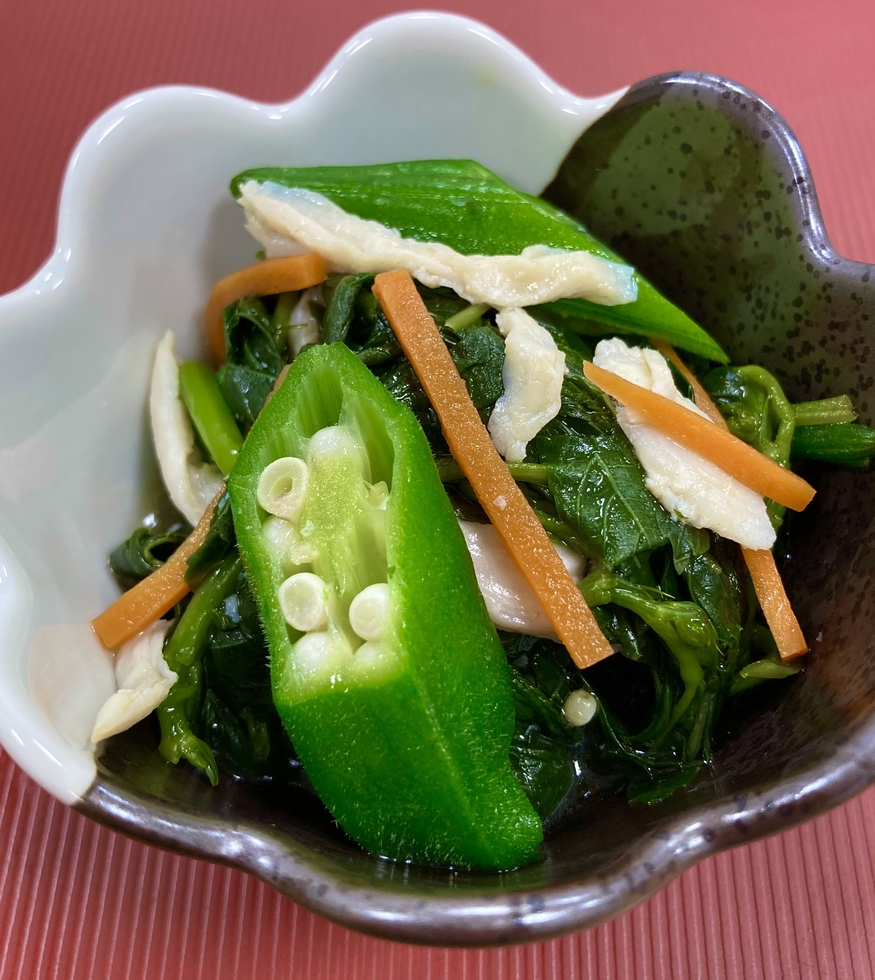 モロヘイヤとオクラと蒸し鶏のナムル風