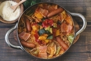 ごろごろ野菜のラタトゥイユ風ナポリタン鍋