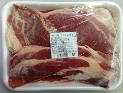 チルドフローズンの牛前バラ肉を1.6㎜でスライスしました。