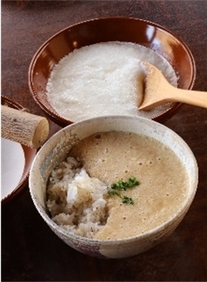 国産長芋100% 皮つき。厳選された国産長芋のひげを丁寧に焼き、まるごと擦りおろすことにより風味・食味を追求しました。