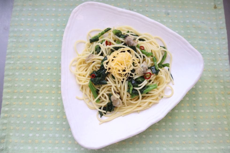 あさりと菜の花の和風アーリオオーリオパスタ