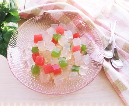 緑は緑茶色素、赤はトマトリコピン色素を使用。