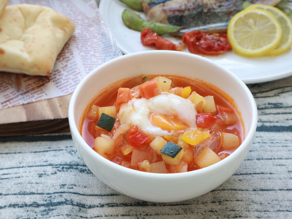 赤ピーマン、黄ピーマン、なす、ズッキーニの4種類の野菜を使いやすい大きさにカットしました。
