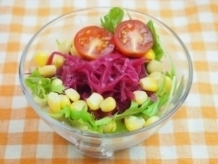 レッドキャベツとコーンの彩りサラダ