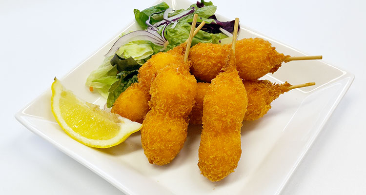 うずら卵のホクホクとした食感をお楽しみいただけるうずら卵串フライです。