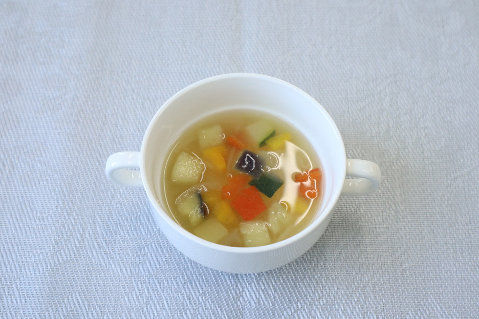 赤ピーマン、黄ピーマン、なす、ズッキーニの4種類の野菜を使いやすい大きさにカットしました。