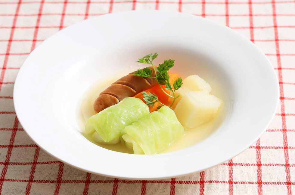 食べやすいように、かんぴょうを使わず柔らかいキャベツで包み込みました。