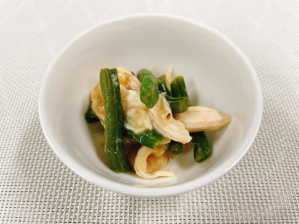 いんげんと蒸し鶏のからし酢みそ和え