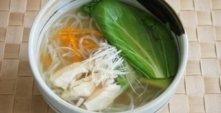 鶏の胸肉に薄味をつけて蒸し、丹念に手でほぐしました。