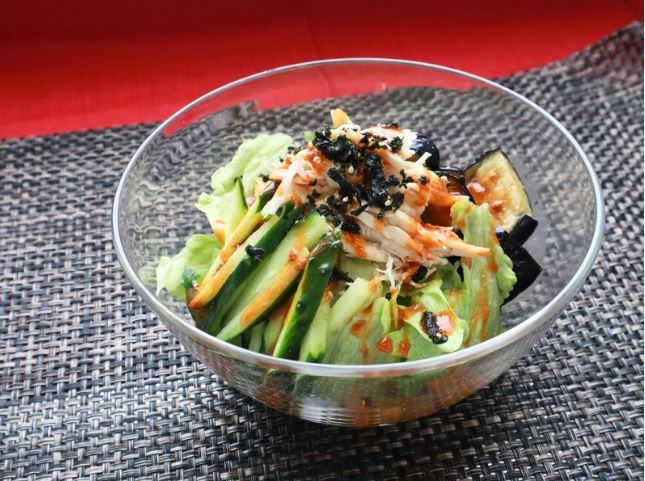 やみつき旨辛! 揚げなすとチキンのパワーサラダ