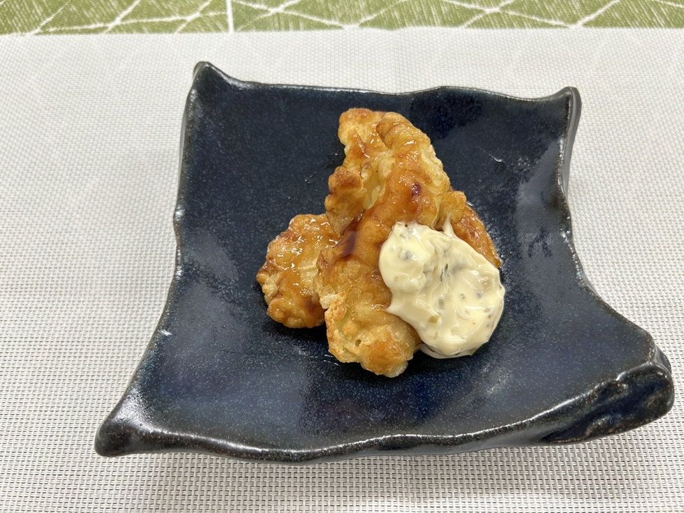 • 大分発祥のとり天のように、鶏肉にしょうゆ・しょうがを加えています。