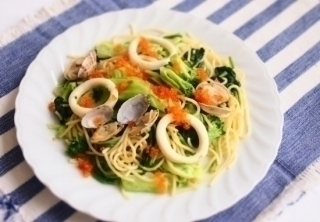 • 海の恵みと緑野菜のペペロンチーノ