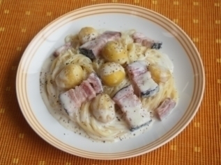 きのこと秋鮭の明太豆乳くりーむパスタ