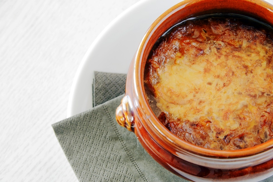 地鶏だしとチーズのうま味!オニオングラタンスープ