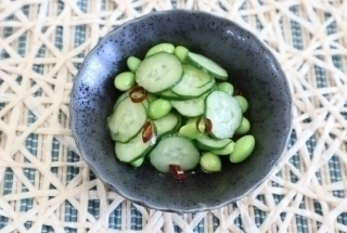 きゅうりと枝豆の甘辛漬け