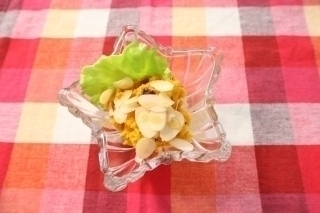 かぼちゃを13mmのダイス状にカットし、スチーム加熱後凍結しました。