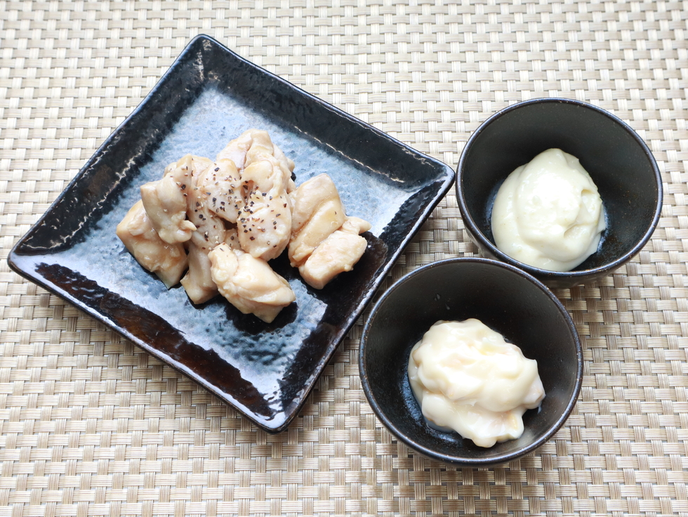 鶏肉の炭火焼 2種のマヨディップソース (ガーリックマヨ・柚子胡椒マヨ)