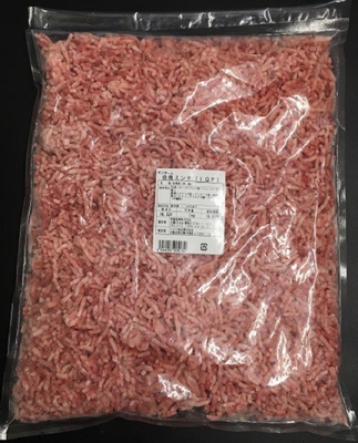 牛肉7:豚肉3の割合で中挽きし、バラ凍結で脱気パックしました。